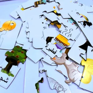 الإملاء أصبح لعبة! بازل تعليمي يربط الصورة بالكلمة والحروف الصحيحة.