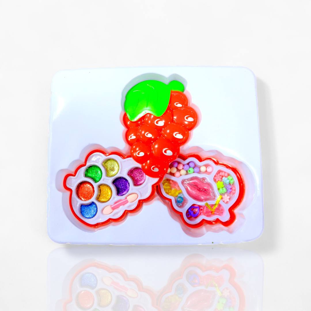 هذه المجموعة هي حلم كل فتاة مبدعة. علبة المكياج مصممة على شكل فراولة رائعة وتحتوي على ألوان آمنة للأطفال. وبعد الانتهاء من التجميل، يمكنها استخدام الخرز المرفق لتصميم أساور وقلادات تتناسب مع إطلالتها.